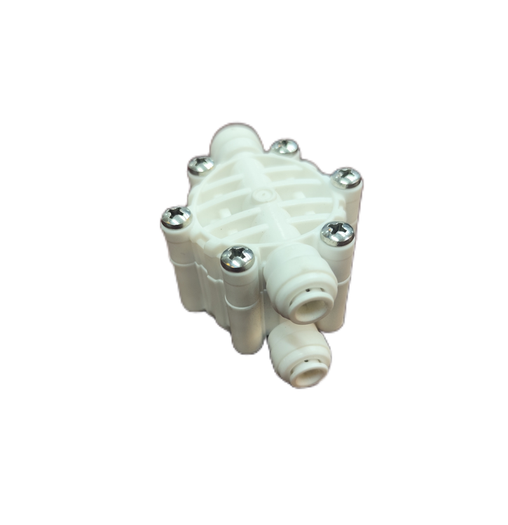 چهارراهی تصفیه آب یک قطعه مکانیکی در دستگاههای تصفیه آب اسمز معکوس است که وظیفه آن قطع و وصل کردن جریان آب ورودی به دستگاه بر اساس سطح آب مخزن تصفیه شده است. این قطعه به طور خودکار عمل کرده و با استفاده از فشار آب، مسیر جریان را مسدود یا باز میکند و به این ترتیب از هدر رفتن آب جلوگیری میکند.