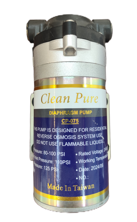 پمپ کلین پیور یک پمپ تقویت کننده فشار است که در دستگاه های تصفیه آب خانگی به ویژه سیستم های اسمز معکوس (RO) استفاده می شود. این پمپ با ایجاد فشار بالا، به عبور آب از فیلترها و به ویژه فیلتر ممبران کمک می کند و راندمان تصفیه آب را افزایش می دهد.